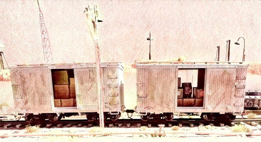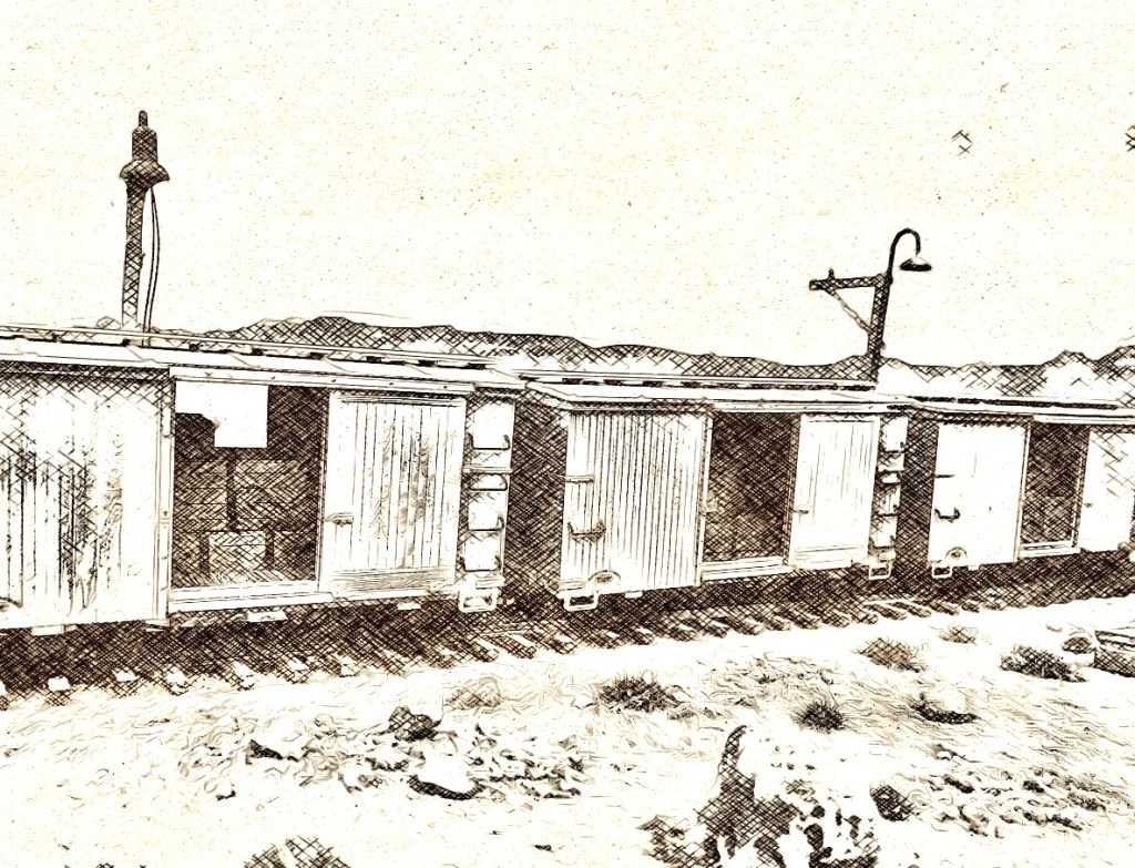 “The long military sidings that serviced the depots and the marshaling yards were recent additions to El Dabaa station. The new military sidings were constructed at the request of the British government for the purpose of the desert campaign. The sidings enabled wagons delivering war materials to be delivered right into the depots from the main line, thus avoiding the transhipment to motor transport. To the west of the station there were several other ‘roads’ (railway parlance for railway tracks) meandering away in different directions serving petrol dumps, Royal Engineers’ stores, armored vehicles’ loading ramps, ordnance, RASC (Royal Army Service Corps) and NAAFI [Navy, Army, Airforce Institutes] depots and a field bakery. One long siding led away into the far distance east of the station and, space at intervals towards its extremity where it curved toward the Mediterranean, were several large ammunition and bomb dumps indifferently camouflaged against enemy observation,” pp. 62-63.