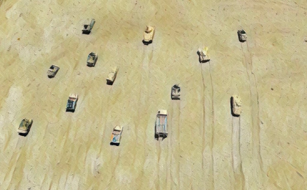 “…—an odd collection of tanks, cars, lorries, light guns and command vehicles—…the stampede began.
