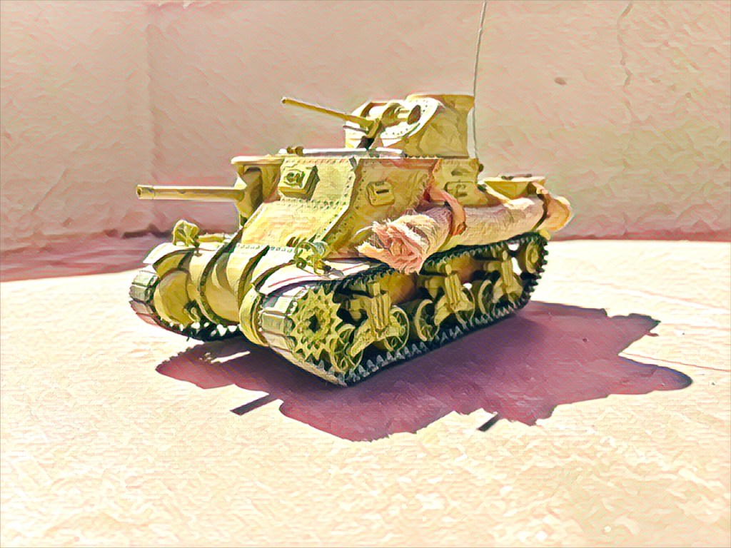 The British asked to make changes. They preferred their tank commander in the top turret manning a radio, not a machine gun. A radio shelf was added inside the turret, along with six slots for firing a pistol. The Grants had a new rounder turret with no machine gun up top. (The photos are of a 1:35 Lee modified.) A few other changes, and the General Grant was born.
